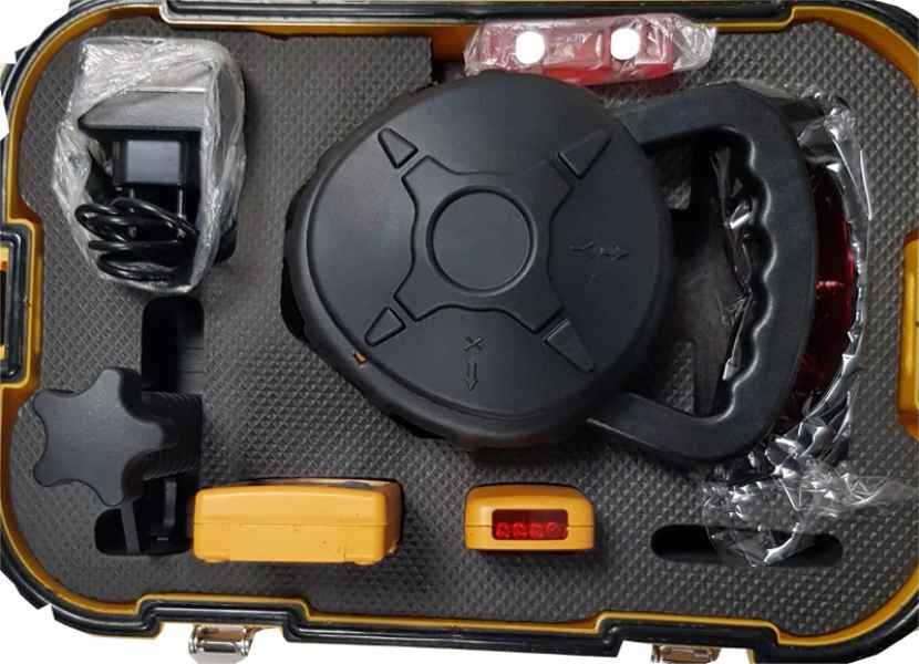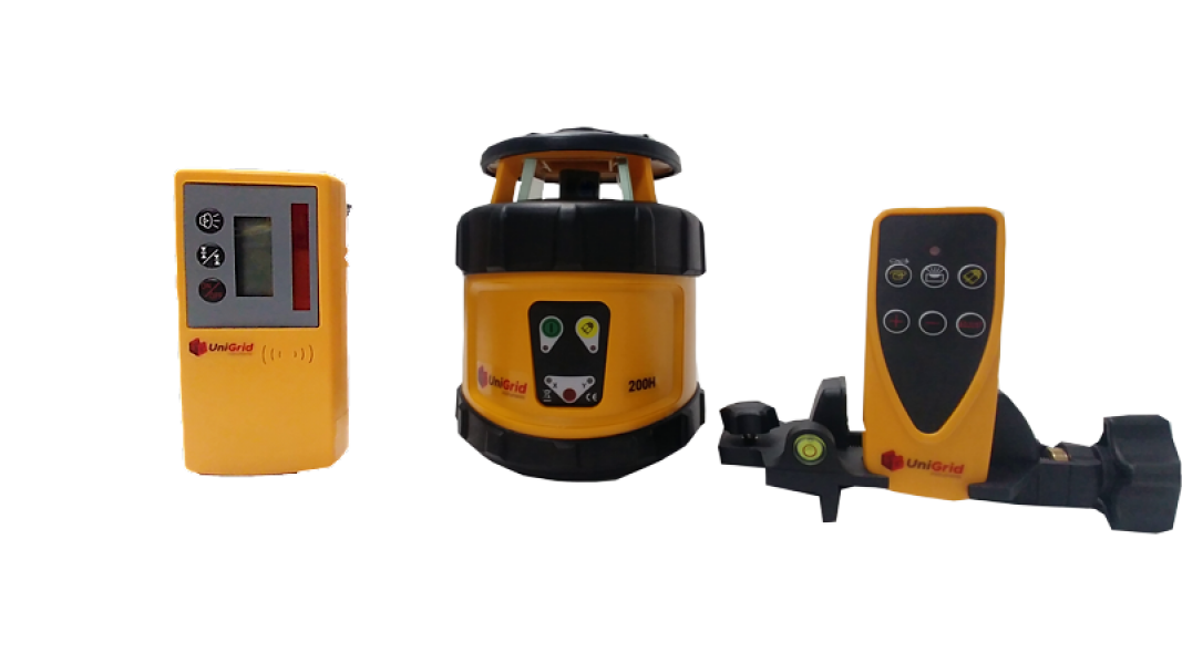 Incluye: Láser, detector con soporte, gafas intensificadoras, baterias recargables, cargador, adaptador para pilas alcalinas, maleta de transporte y control remoto y detector para nivel láser.